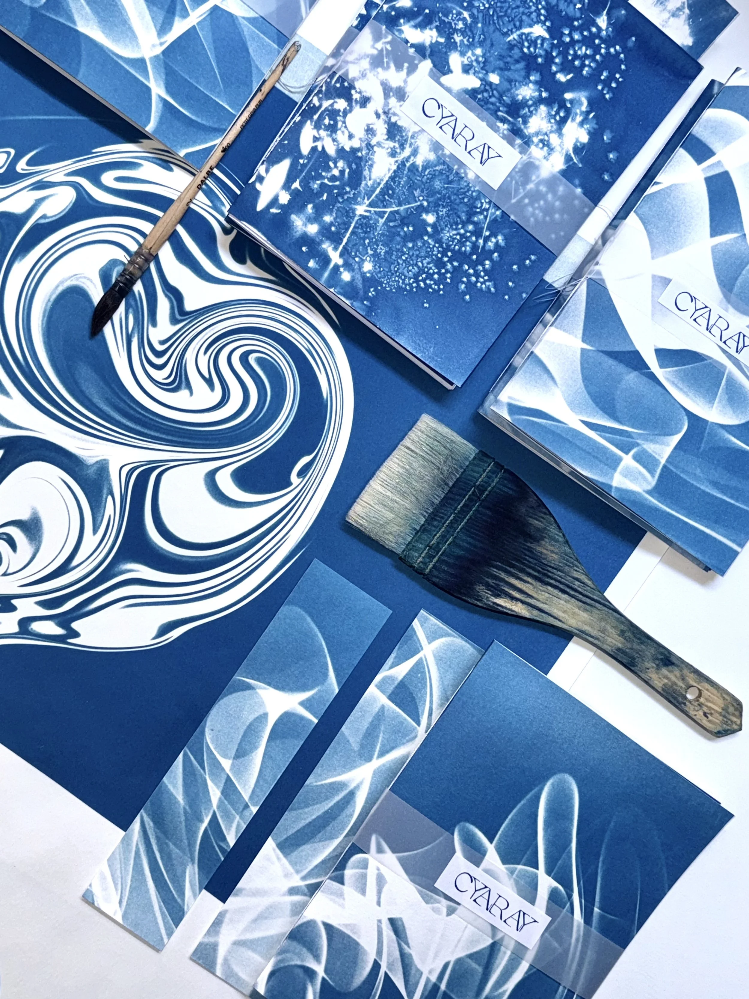 Je réalise des cyanotypes sur commande pour répondre à vos besoins : affiches, packaging, ou toute autre idée créative.